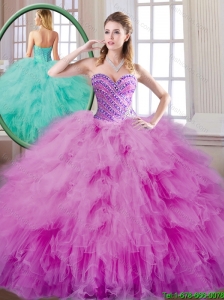 Strapless Fuchsia 15 Quinceanera Dresses with Ruffles and Beading