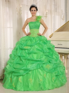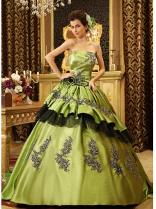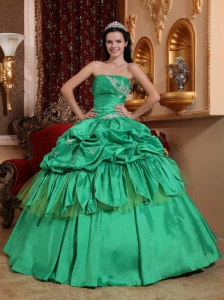 Low Price Apple Green Quinceanera Dress Strapless Taffeta Appliques Ball Gown