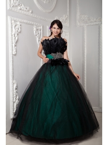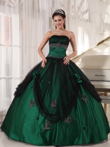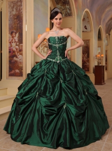 Latest Hunter Green Quinceanera Dress Strapless Beading Taffeta Ball Gown