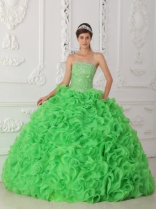 Beautiful Green Quinceanera Dress Strapless Organza Beading Ball Gown