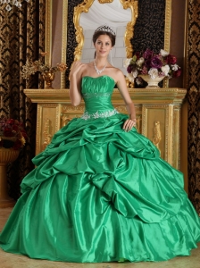 Pretty Green Quinceanera Dress Strapless Tulle and Taffeta Beading Ball Gown
