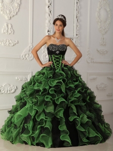 Ball Gown Strapless Green Ruffles Embroidery 15 Quinceanera Dresses