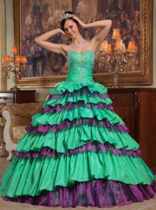 Sweet Green Quinceanera Dress Sweetheart Taffeta and Organza Beading Ball Gown