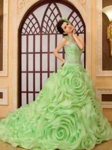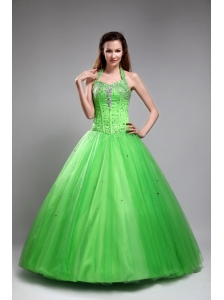 Cute Spring Green Sweet 16 Dress Halter Tulle Beading Ball Gown
