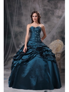Modest Teal Ball Gown Sweetheart Quinceanea Dress Taffeta Appliques Floor-length