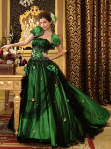 Multi-color Sweetheart Appliques Puffy Quinceanera Dresses with Green Flower
