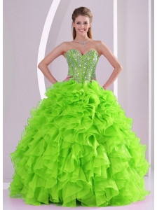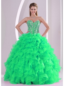 Sweet Green Quinceanera Dress Sweetheart Organza Beading Ball Gown