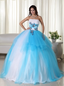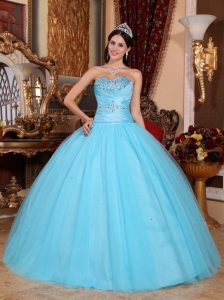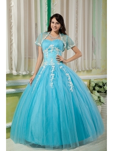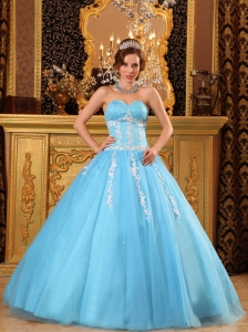 Popular Aqua Blue Quinceanera Dress Sweetheart Tulle Appliques Ball Gown