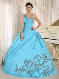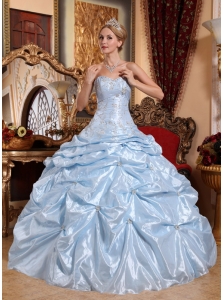 Discount Baby Blue Sweet 16 Dress Sweetheart Taffeta Embroidery with Beading Ball Gown