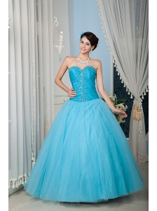 Aqua Ball Gown Strapless Floor-length Tulle Beading Quinceanera Dress