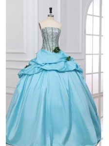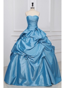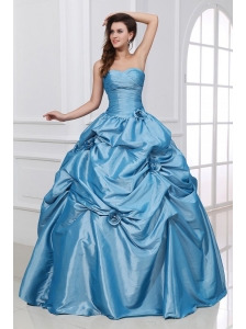 Hand Made Flowers Sweetheart Light Blue Taffeta Quinceanera Dress