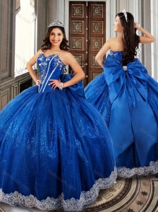Ball Gown Beaded Royal Blue Sweet 16 Dress with Appliques and Bowknot