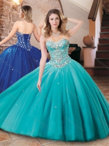 Lovely Big Puffy Tulle Aqua Blue Quinceanera Dress with Beading