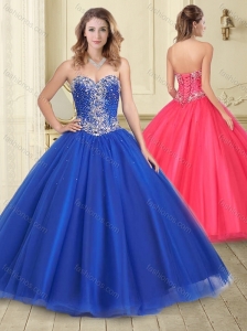Discount Big Puffy Beaded Bodice Tulle Quinceanera Gown in Royal Blue