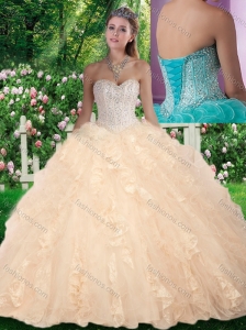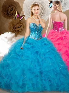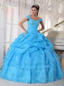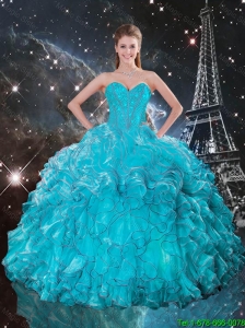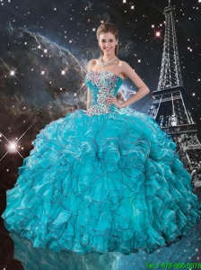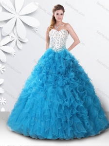 Inexpensive Sky Blue Quinceanera Dress Organza Beading And Ruffles Ball Gown