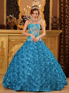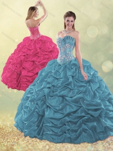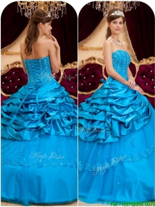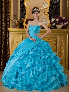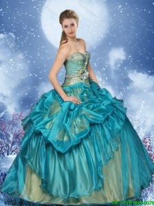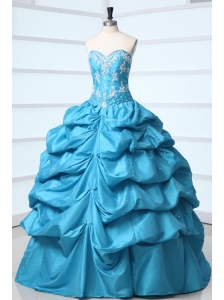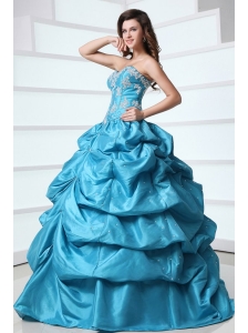 Sweetheart Appliques and Pick-ups Taffeta Quinceanera Dress in Teal