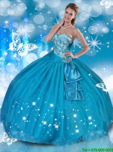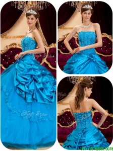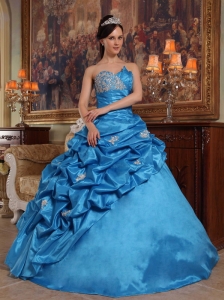 Teal Sweetheart Taffeta Quinceanera Dress with Appliques and Pick-ups