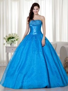 Sky Blue Ball Gown Strapless Floor-length Taffeta Beading Quinceanera Dress