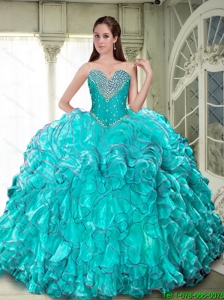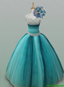 Elegant Teal Quinceanera Dress Sweetheart Taffeta Beading Ball Gown