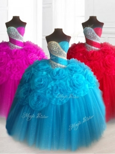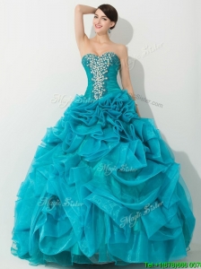 Romantic Teal Quinceanera Dress Strapless Tulle Beading and Ruch Ball Gown
