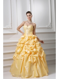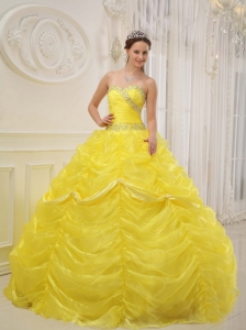 Ball Gown Sweetheart Beading Pick-ups Yellow Quinceanera Dress