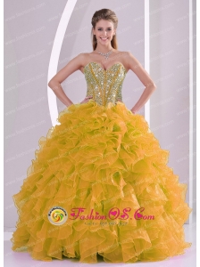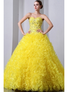 Custom Made For 2013 Yellow Puffy Quinceanera Dresses with Beaded and Ruffles