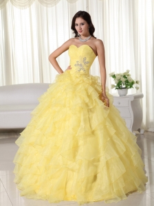 Yellow Ball Gown Sweetheart Neck Floor-length Organza Appliques Quinceanera Dress