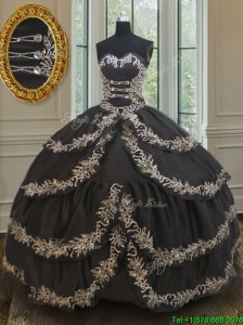 2017 Exclusive Taffeta Black Sweet 16 Dress with Embroidery and Ruffled Layers