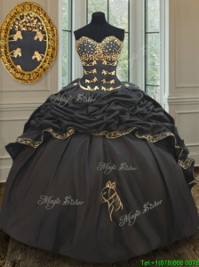 Wonderful Bubble Embroideried and Beaded Black Quinceanera Dress in Taffeta