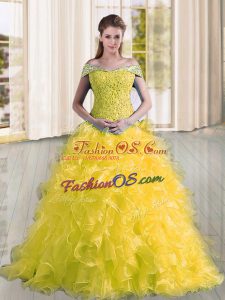 Beautiful Beaded Bodice Organza Quinceanera Dress with Brush Train