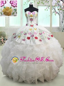 Latest Really Puffy Embroideried and Beaded White Sweet 15 Dress in Organza