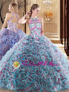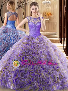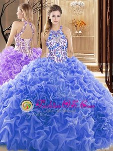 2017 Best Sweetheart Organza Blue and Purple Quinceanera Gown with Handmade Flower