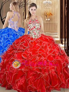 Luxurious White and Red Quinceanera Dresses with Ruffled Layers and Embroidery