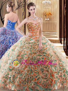 Luxurious Beaded Brush Train Champagne Quinceanera Dress in Rolling Flowers