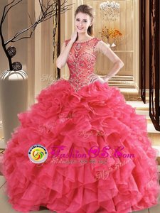 2017 Perfect Tulle Watermelon Red Quinceanera Dress with Beading and Bowknot