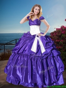 Classical Off the Shoulder Cap Sleeves Quinceanera Dress with Beading and Ruffles