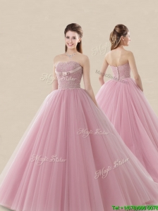 Luxurious Strapless Brush Train Sweet 16 Dress with Lace and Bowknot