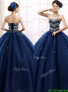 Discount Rhinestoned Really Puffy Quinceanera Dress in Navy Blue