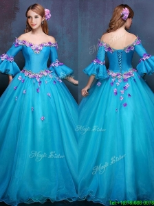 2016 Elegant Beaded Bodice Really Puffy Sweet 16 Dress in Blue