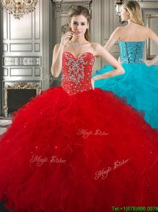 2016 New Style Red Tulle Sweet 16 Dress with Beading and Ruffles
