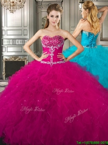 Affordable Beaded and Ruffled Fuchsia Sweet 16 Dress in Tulle