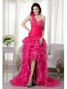 Beautiful Strapless Chiffon Red Dama Dress with Beading and Ruching