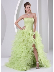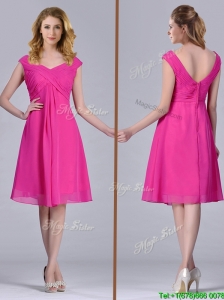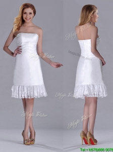 Simple Ruch Chiffon Strapless Knee-length Dama Dress