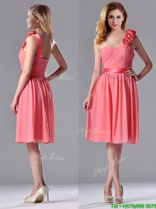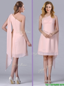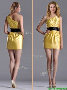 Exclusive One Shoulder Chiffon Yellow Dama Dress in Ankle Length