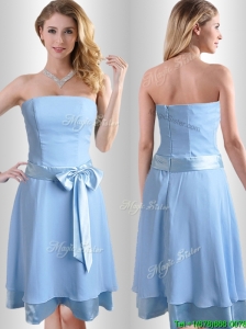 Satin A-line Strapless Sky Blue Cheap Dama Dress