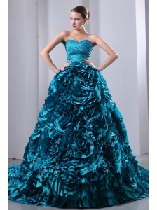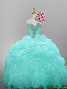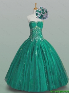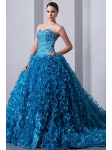 Classical Teal Quinceanera Dress Straps Chapel Train Organza Ball Gown