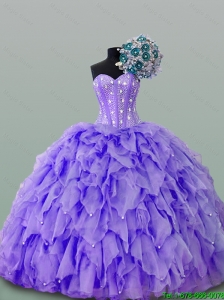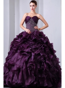 Brand New Dark Purple Quinceanera Dress Sweetheart Organza Beading Ball Gown