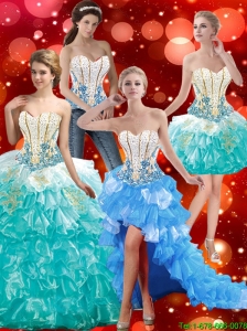 Inexpensive Sky Blue Quinceanera Dress Organza Beading And Ruffles Ball Gown