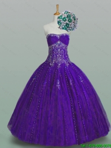 Classical Purple Quinceanera Dress Strapless Taffeta Appliques Ball Gown