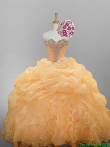 Pretty Golden Yellow Quinceanera Dress Strapless Tulle and Printing Sequins Ball Gown